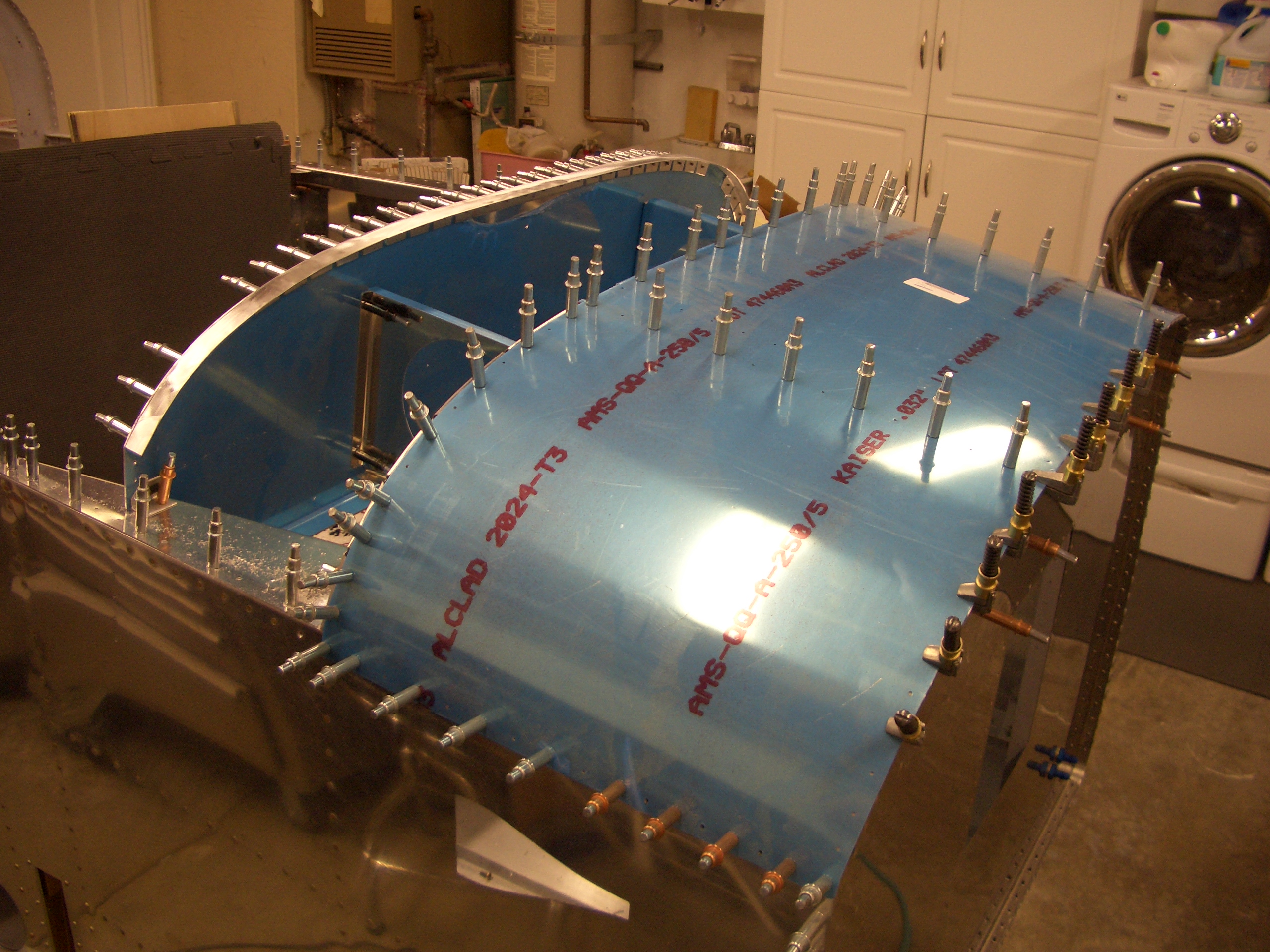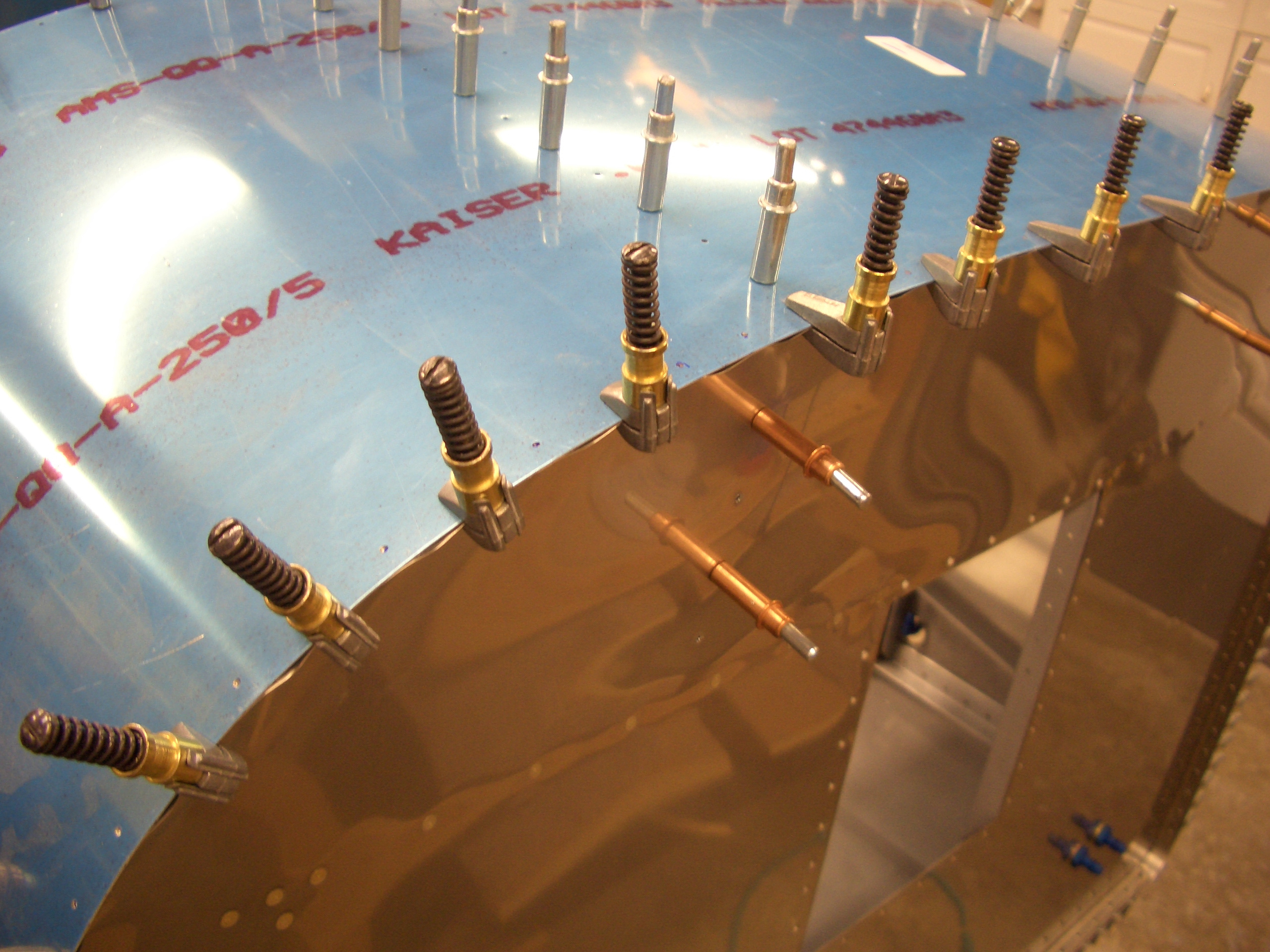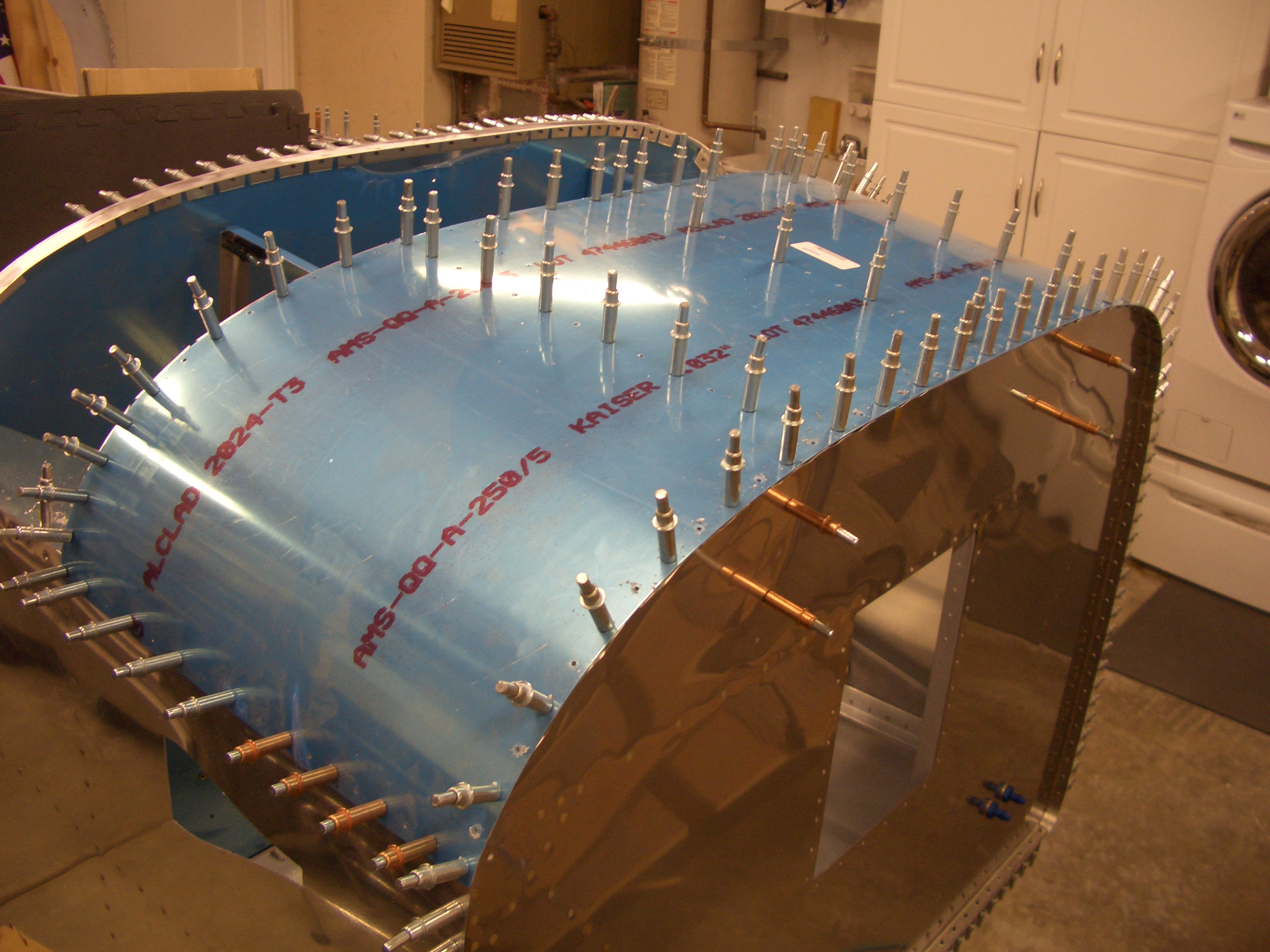 Here are these holes from the outside. I’ve only drilled them to #40 so far so that I could cleco the parts together to keep anything from shifting.