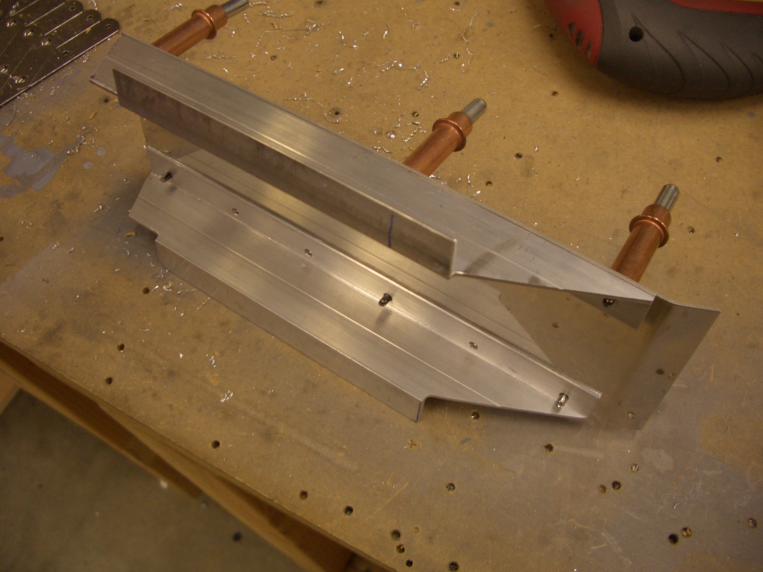I drilled the top to the side z channels. I intentionally drilled the top to the channels prior to drilling the channels to the floor so that I could ensure the top edges line up perfectly with the apex of the channels.
