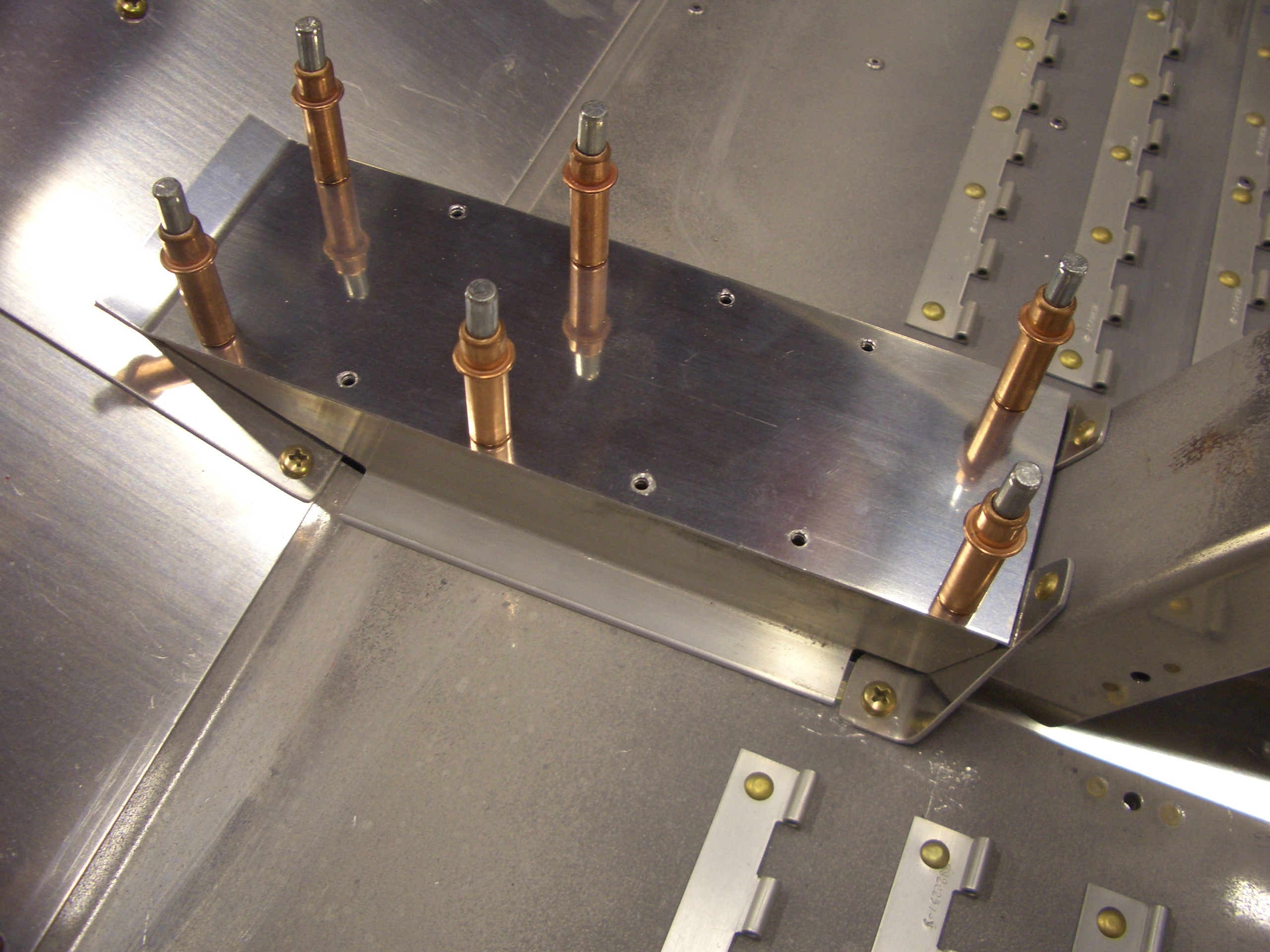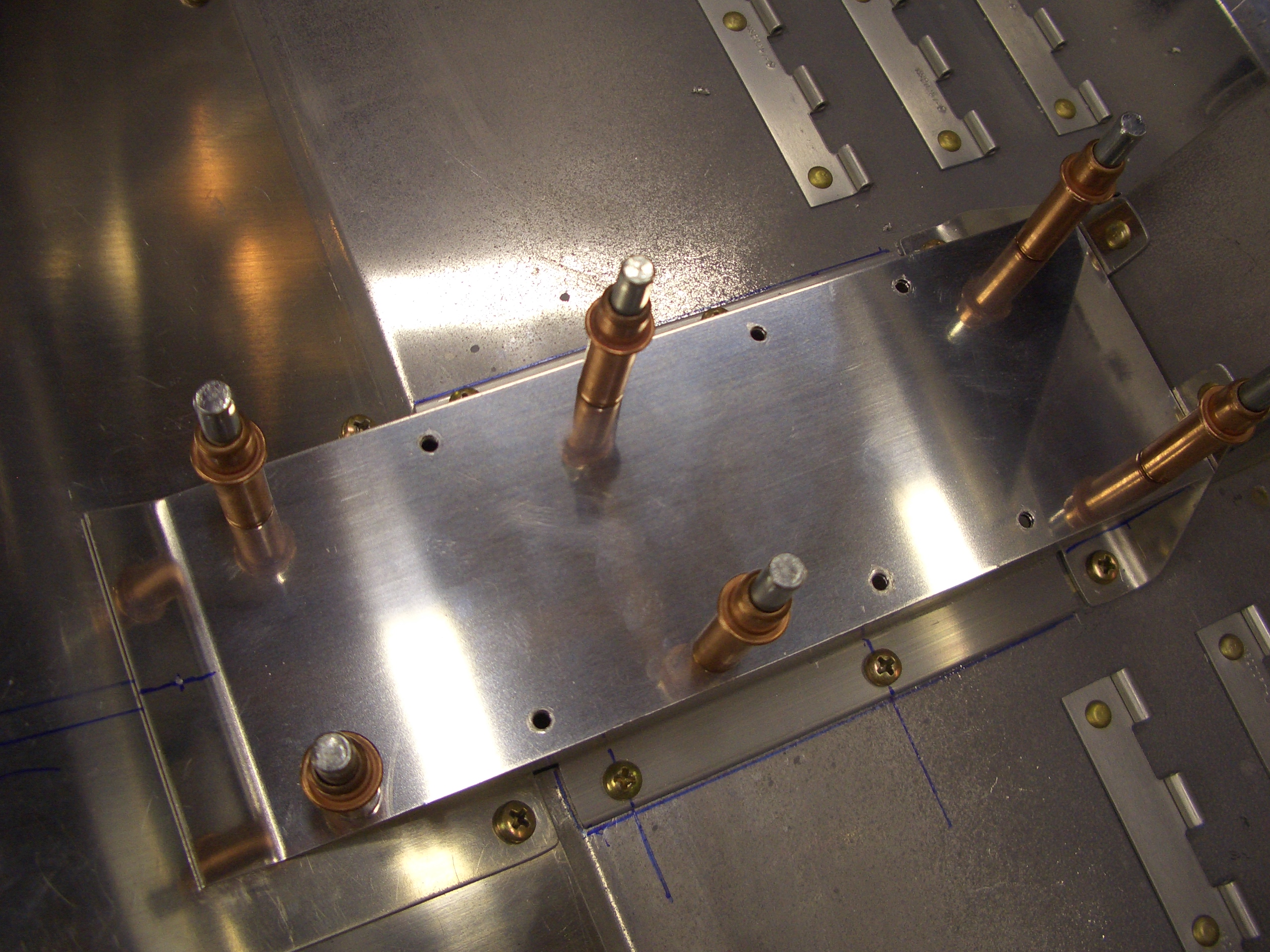 I bent the forward edge of the center cover top upward to match the slope of the forward seat pans. This bending brake has come in handy for a lot of things in the build.