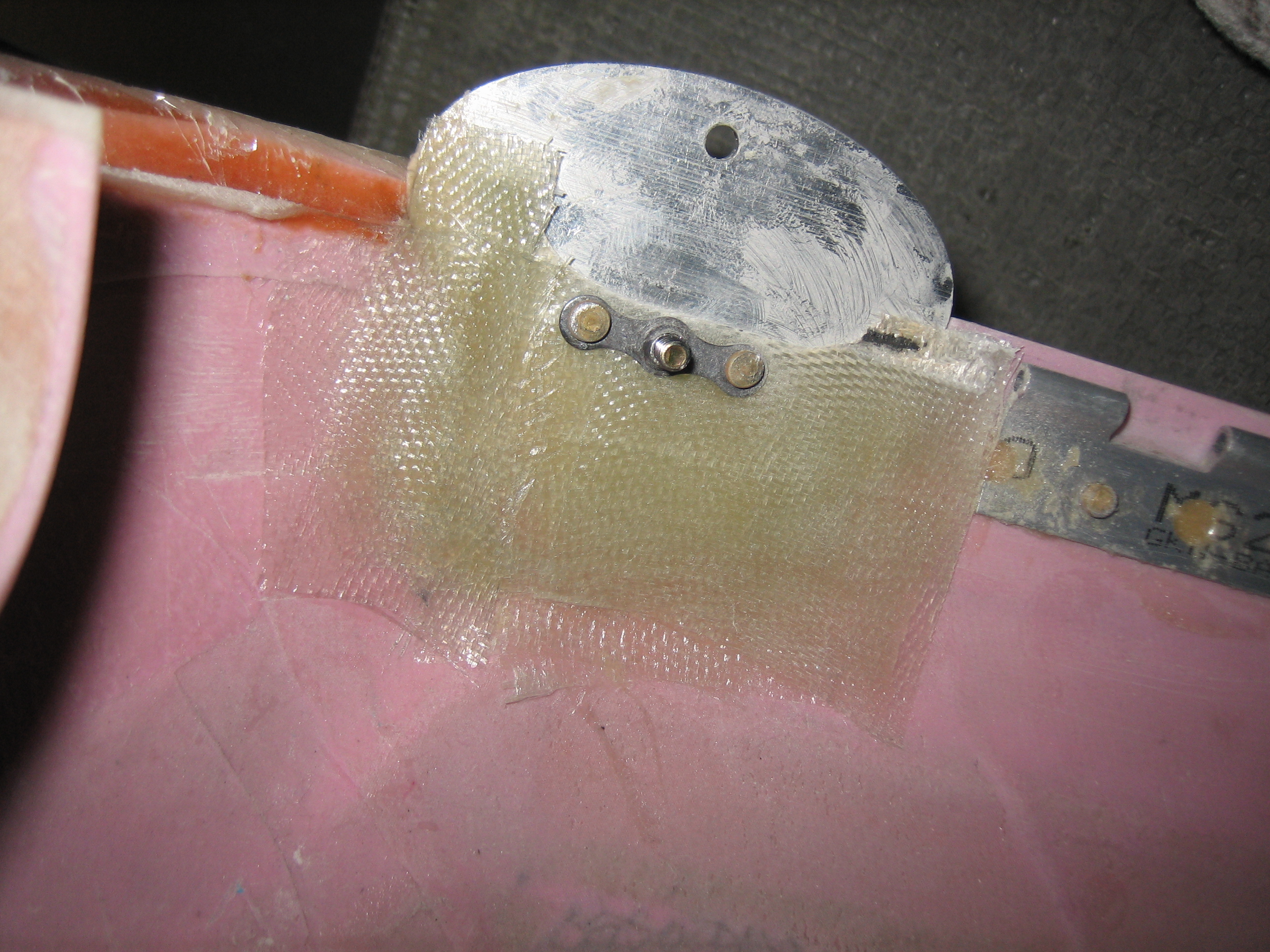 I laid up some additional glass near the front of the hinge pin covers where the gaps I pointed out yesterday were located. I’ll trim and sand this back tomorrow after it cures.