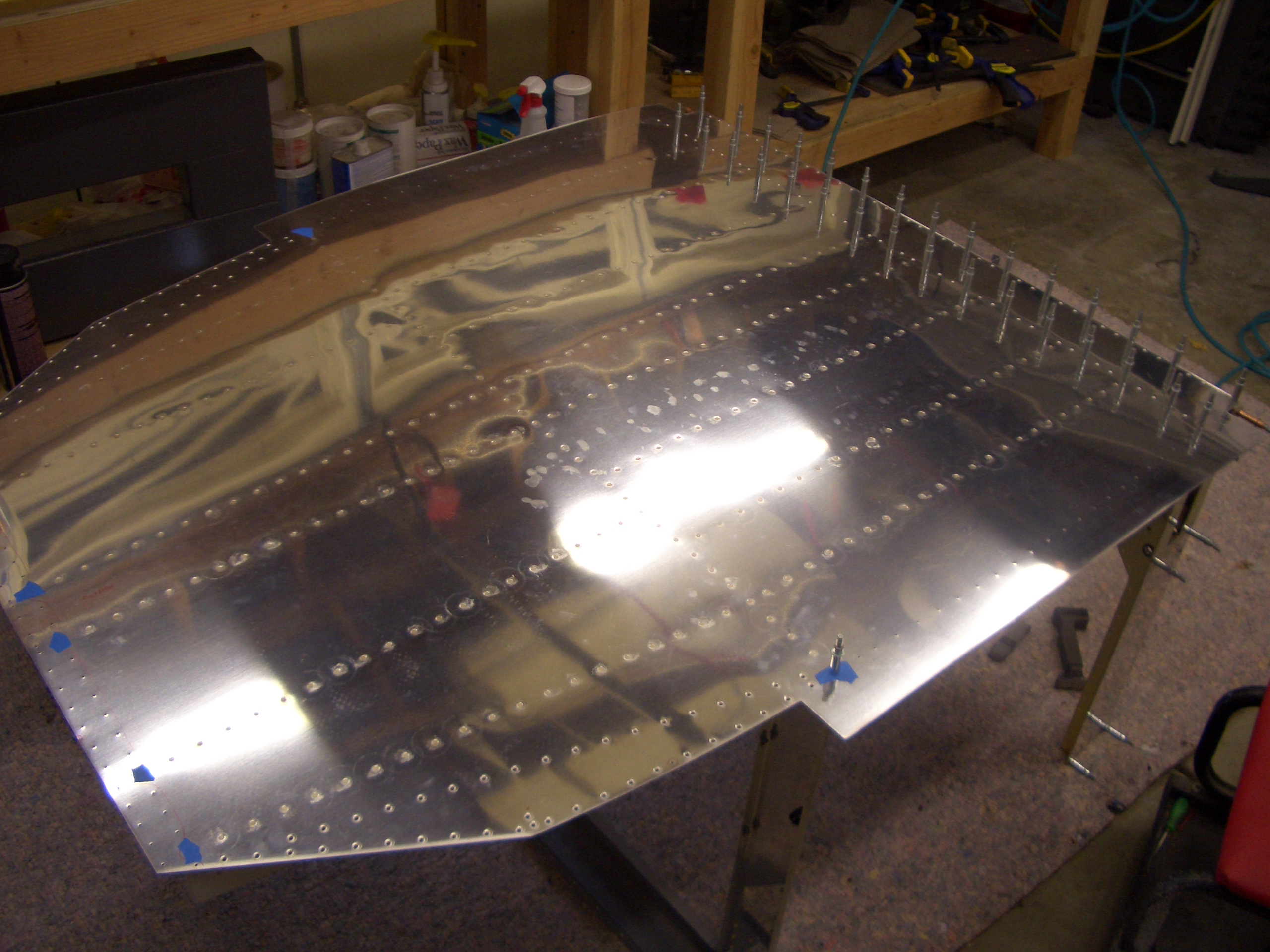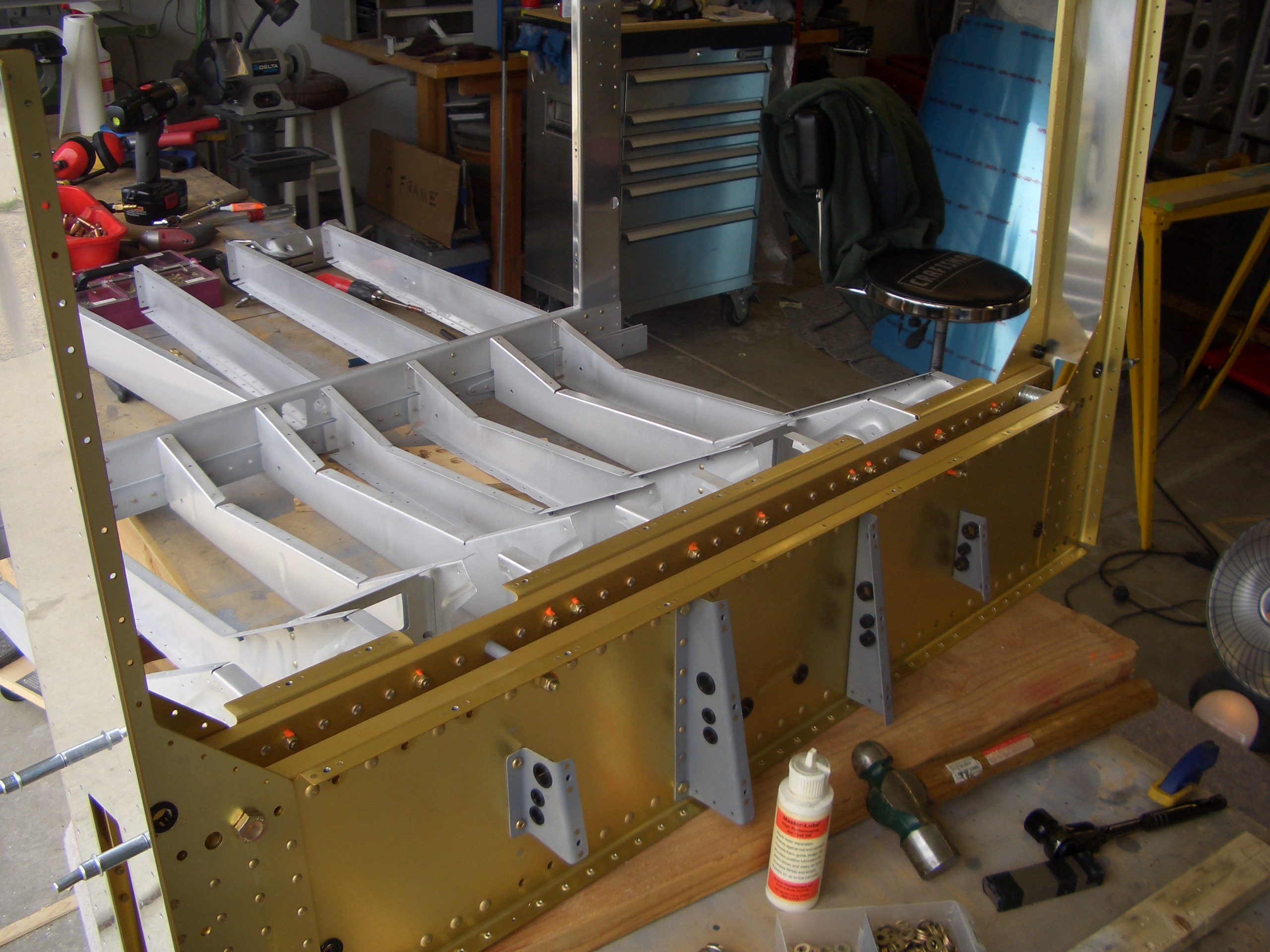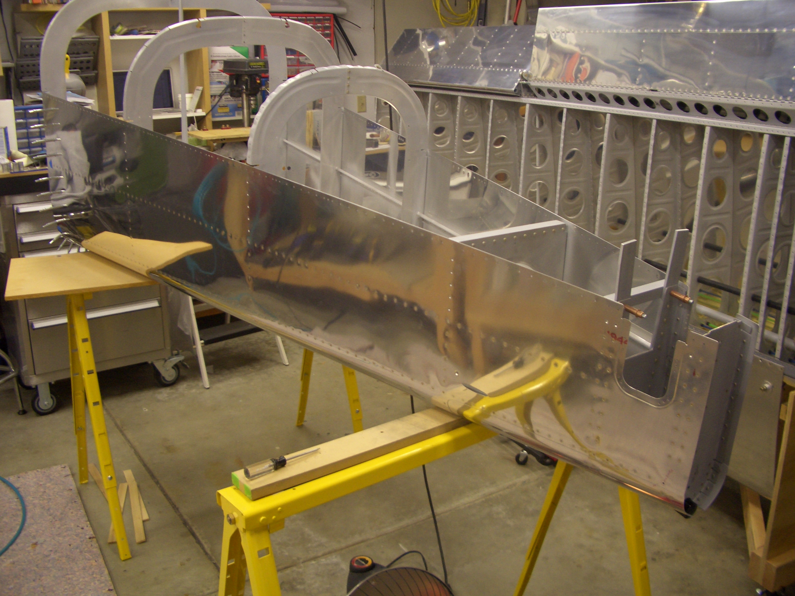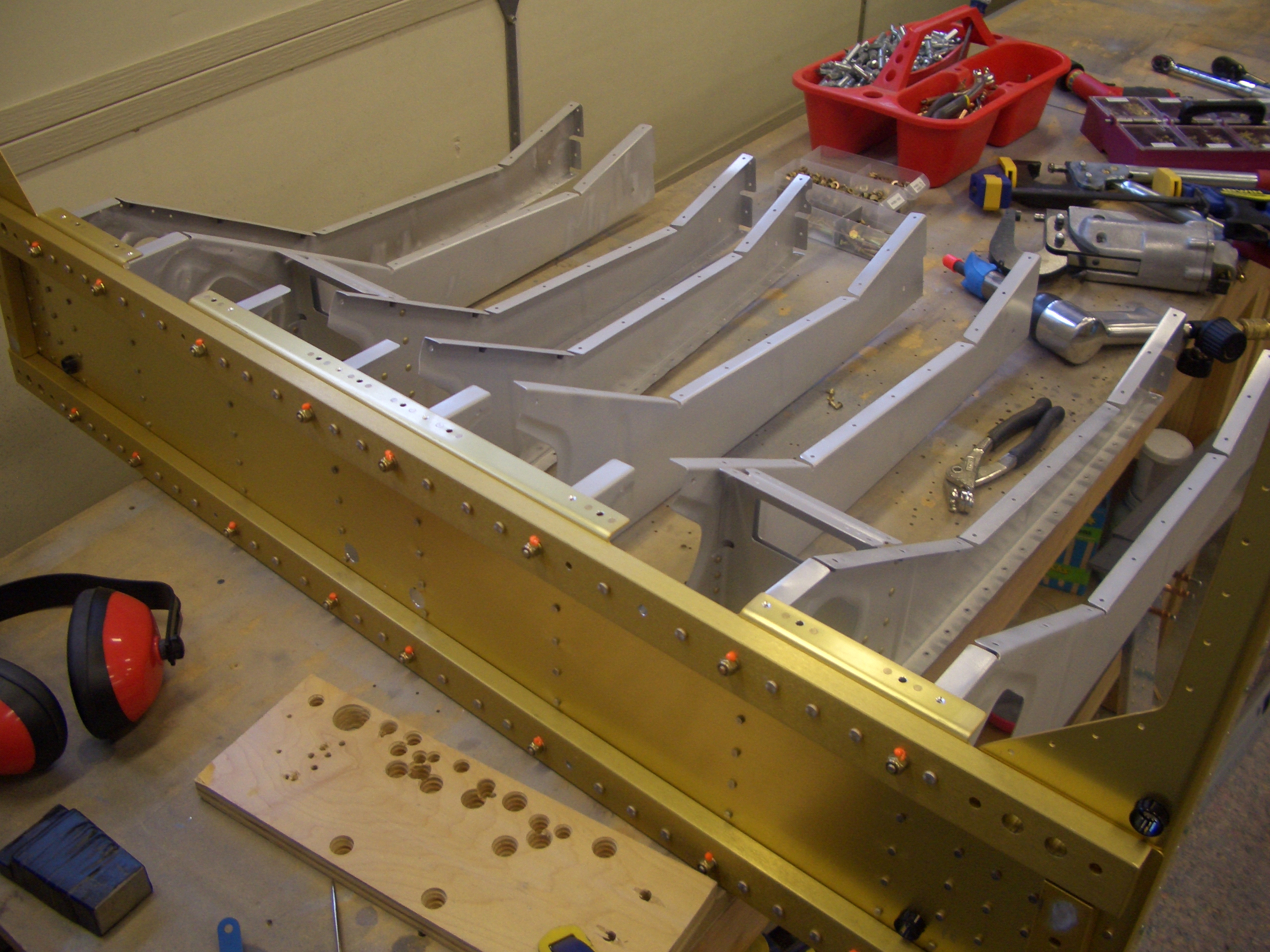 After cutting of the ends, I clamped the rib in place and match drilled it to the bottom skin.