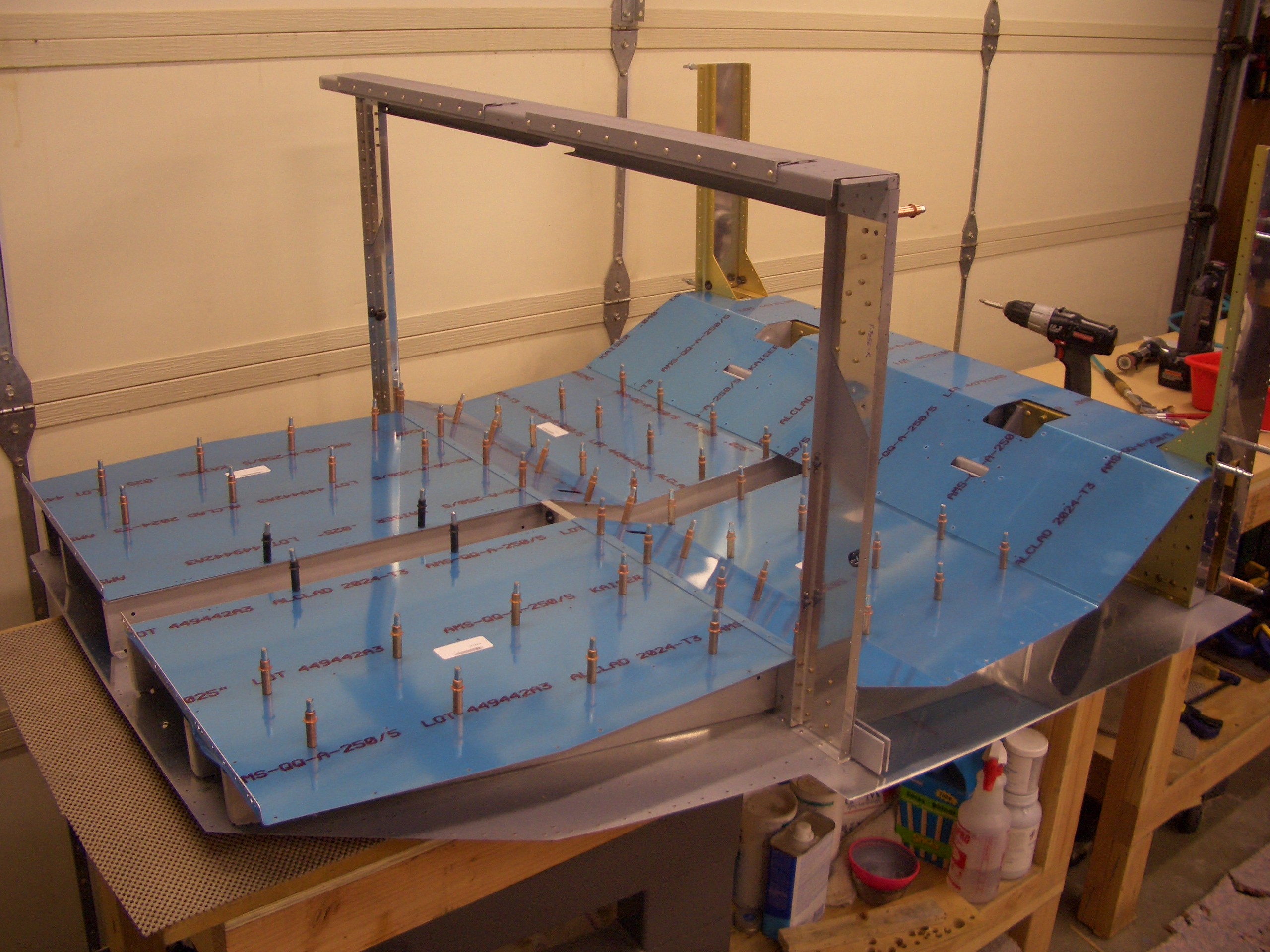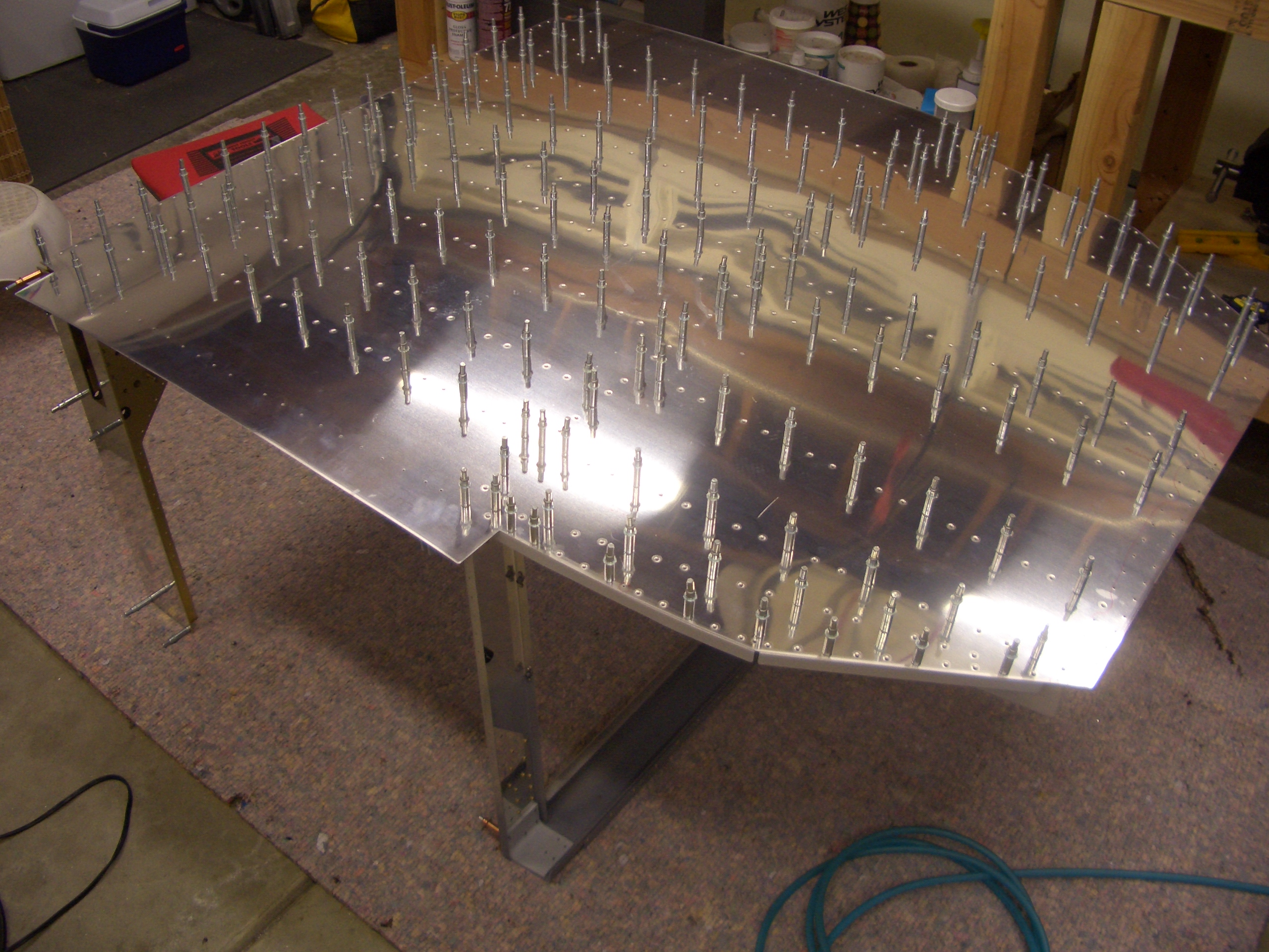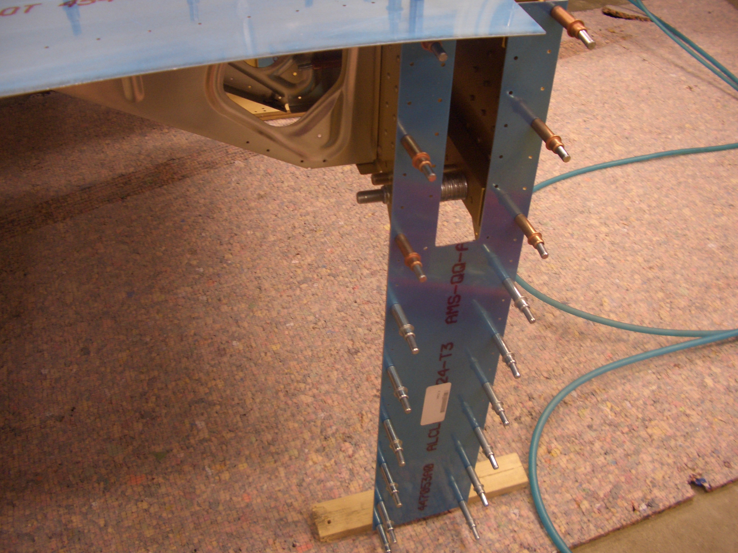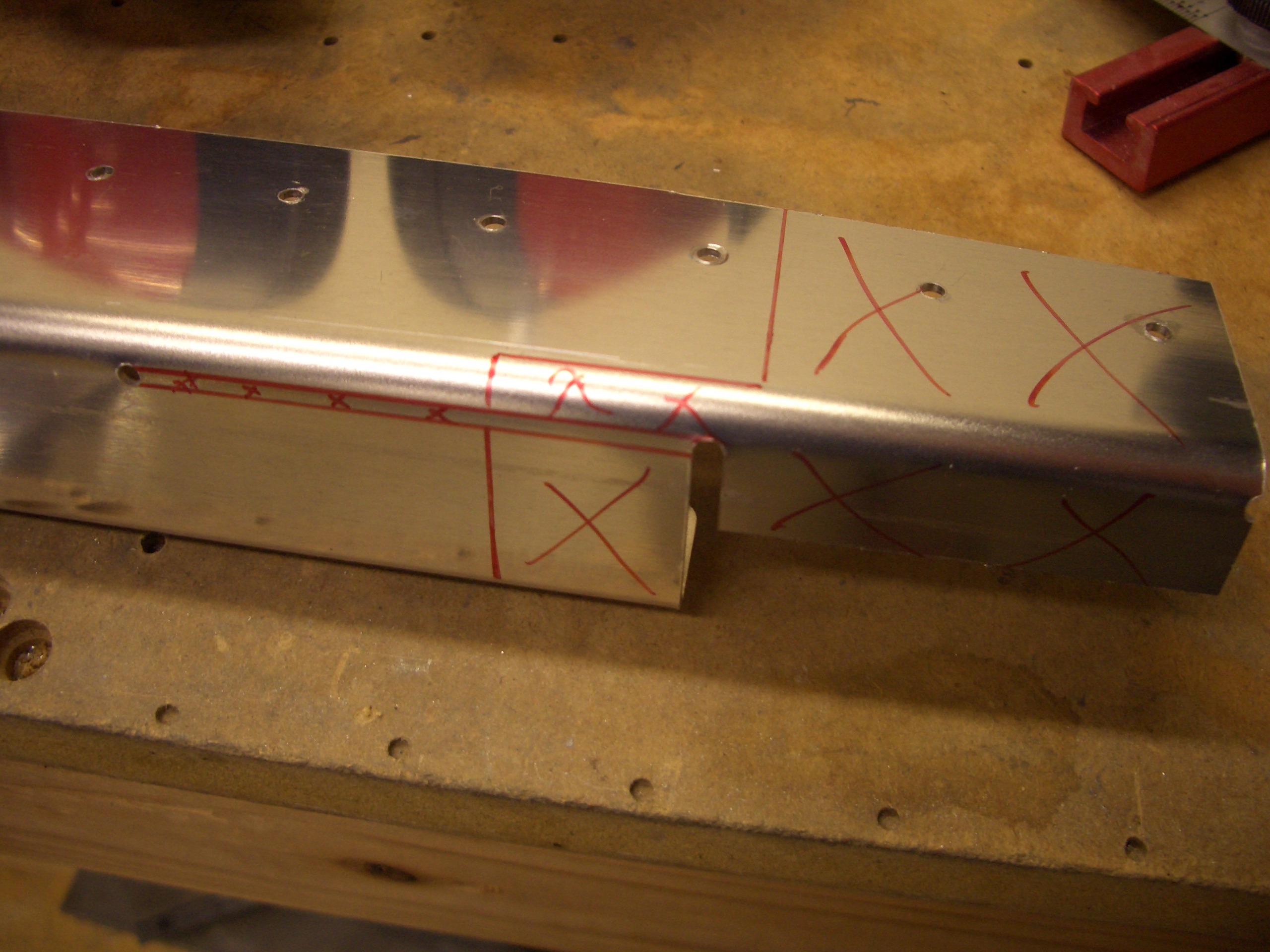 After cutting of the ends, I clamped the rib in place and match drilled it to the bottom skin.