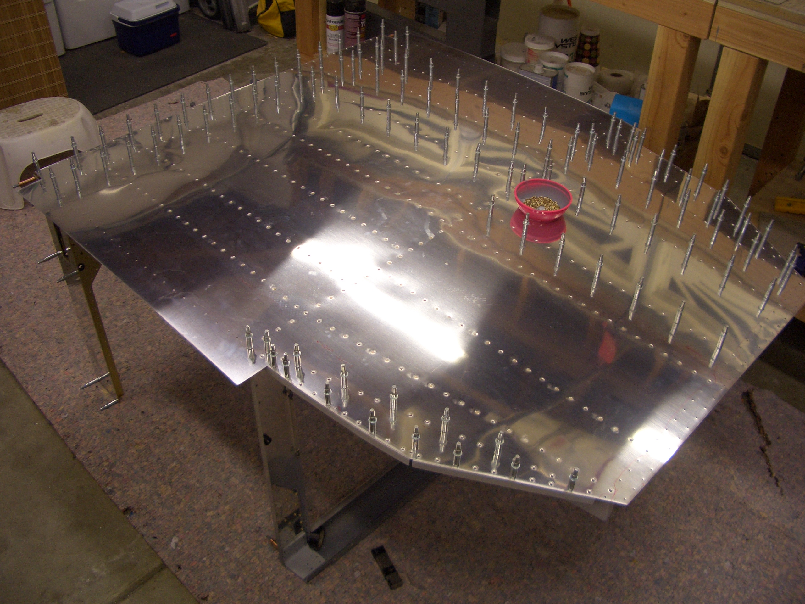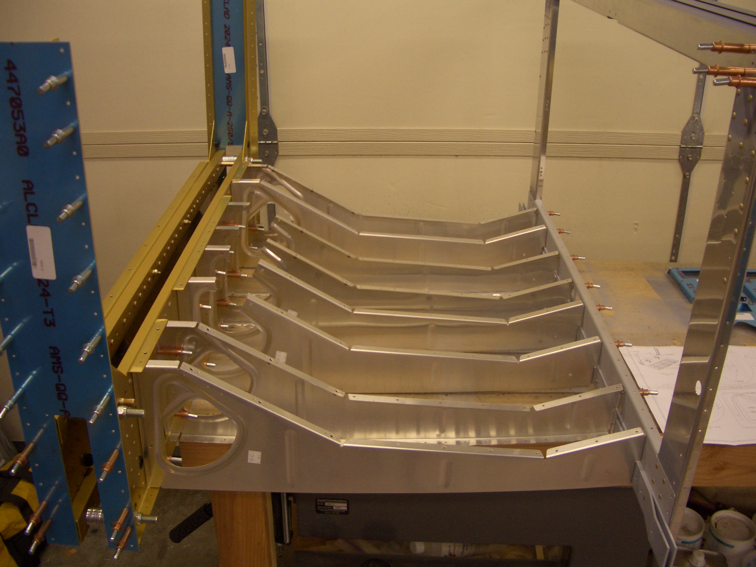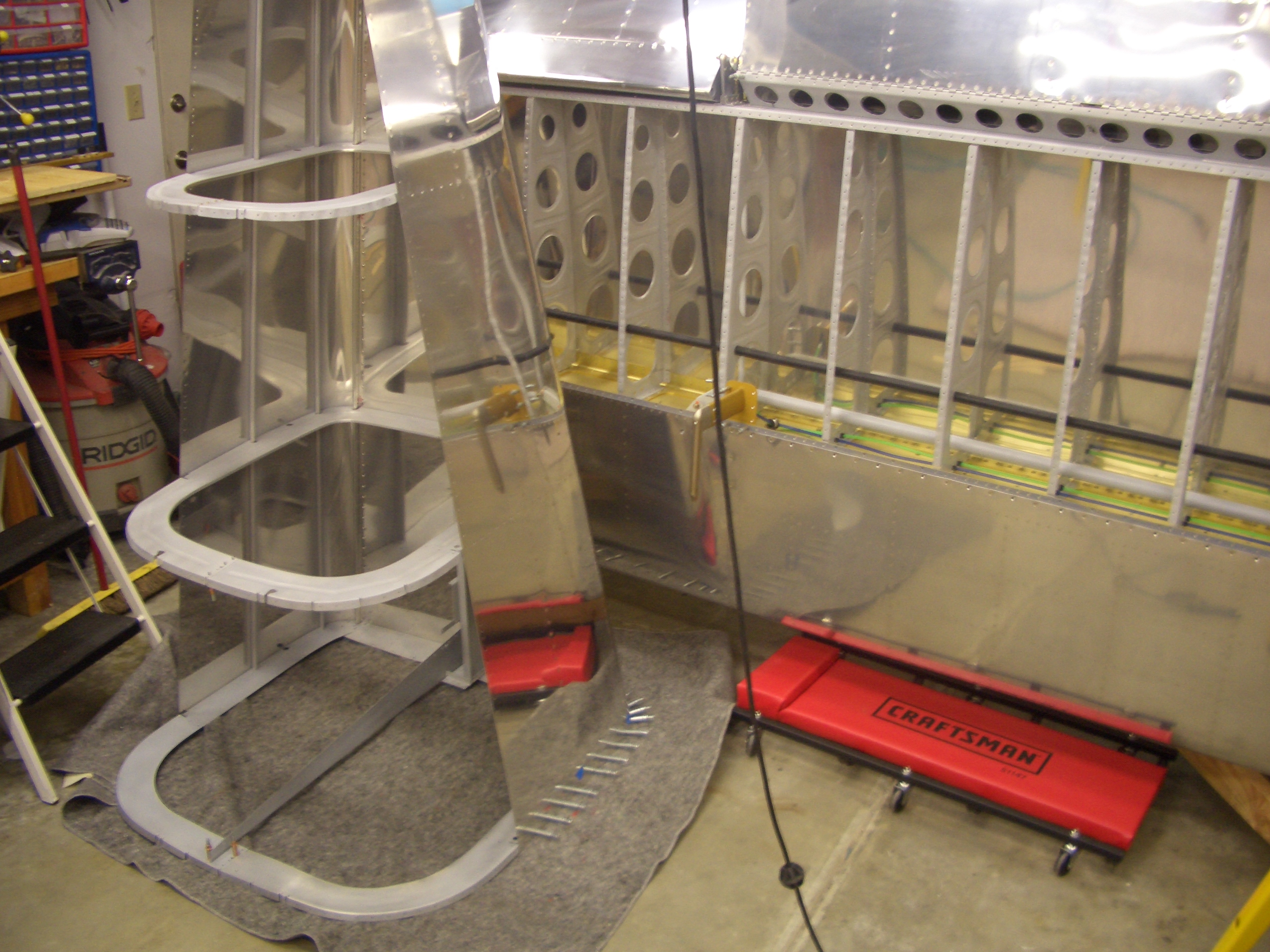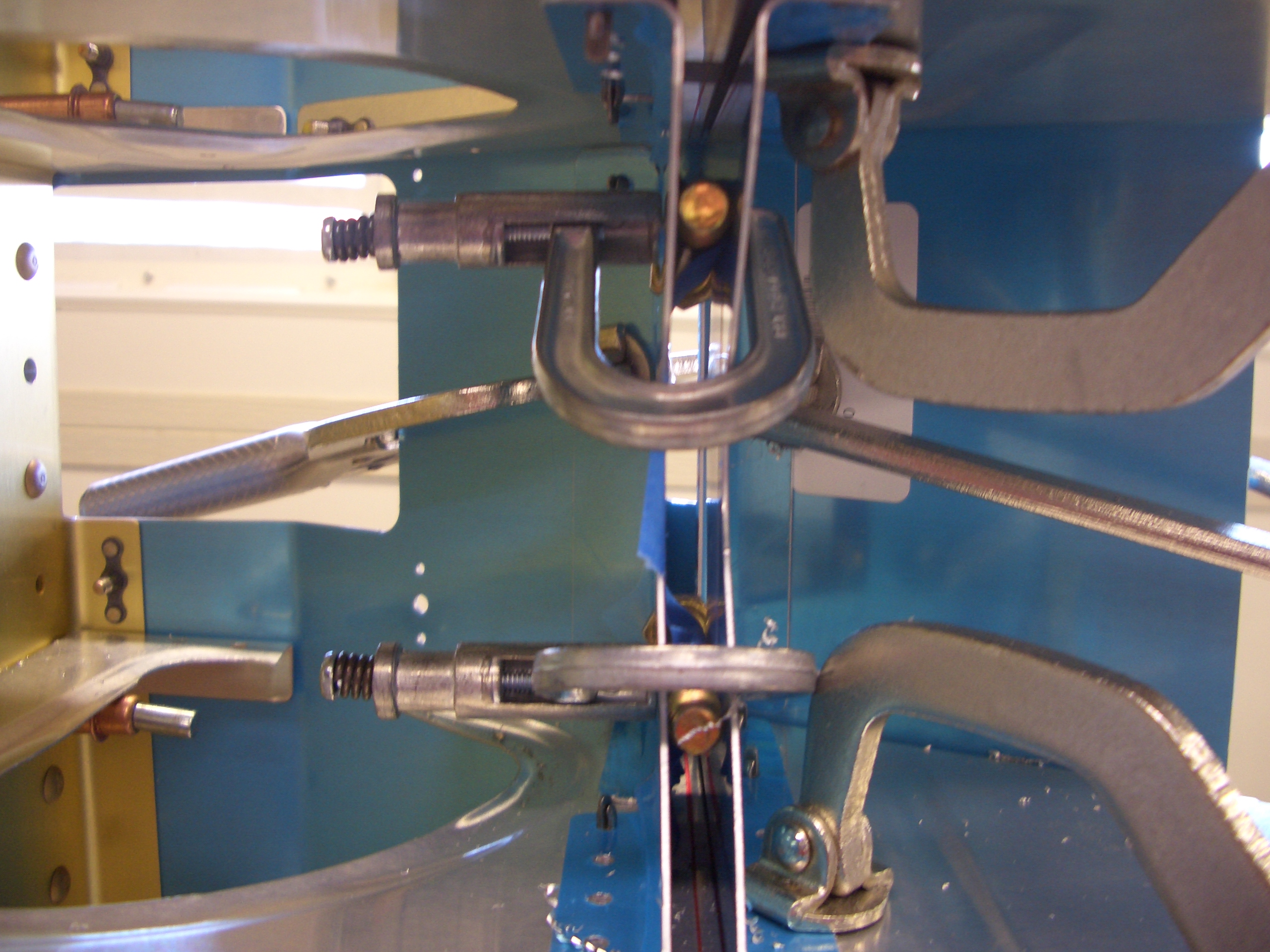 After cutting of the ends, I clamped the rib in place and match drilled it to the bottom skin.