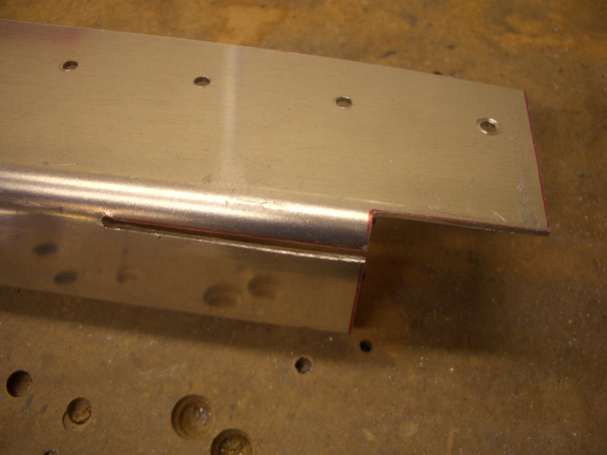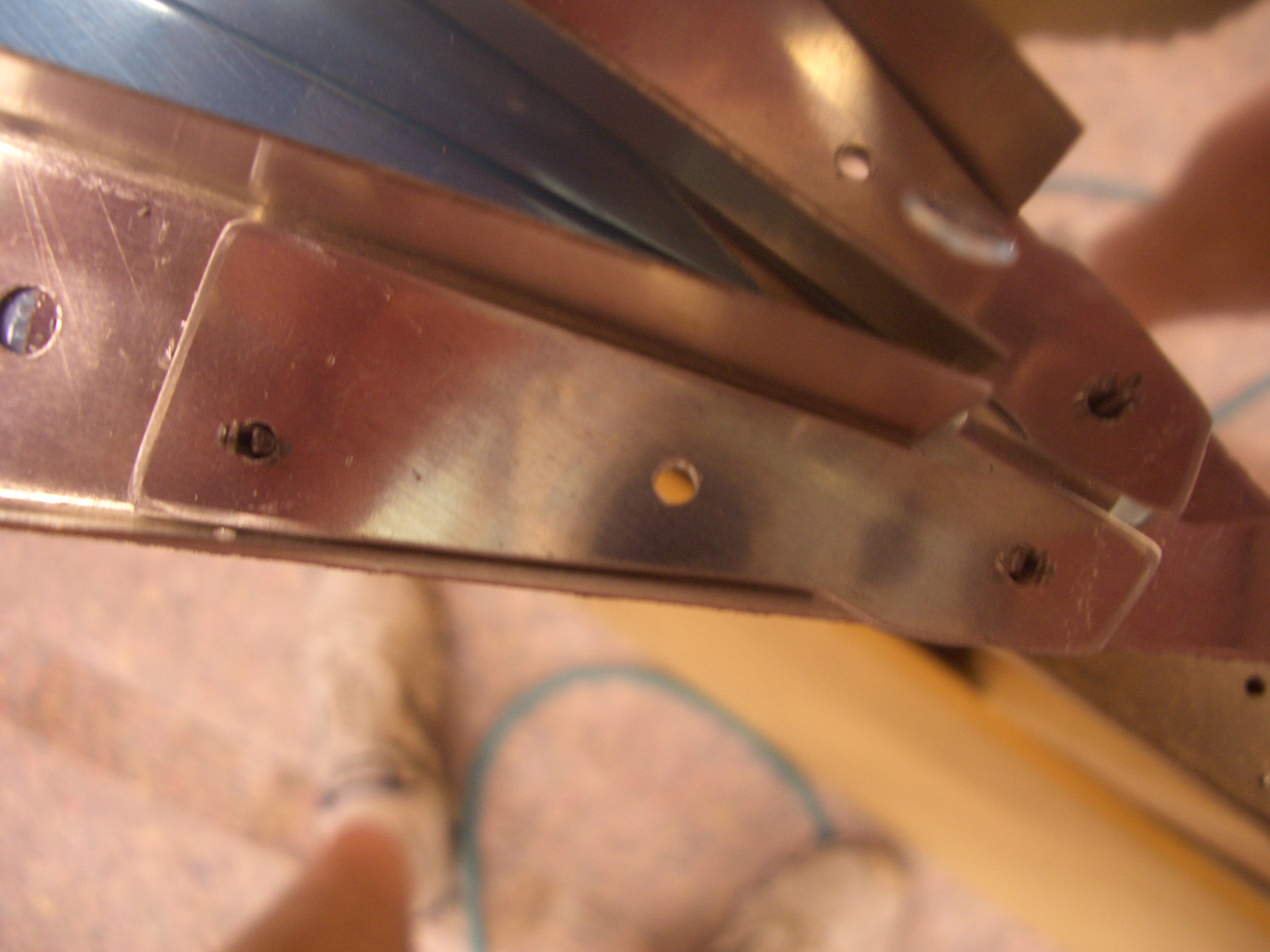 The aft attachment straps will have edge distance problems if fabricated according to plans. Instead, I made the strap widen somewhat as it exits F-623 so that the aft rivet (on the right in the picture below) will have sufficient edge distance on all sides.
