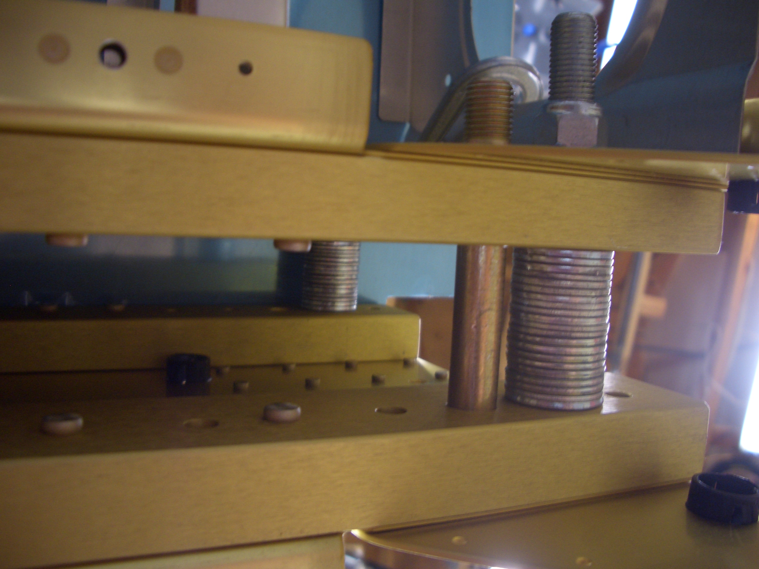 I clamped the two halves of F-704 together using the spacers I made and some hardware store 7/16″ bolts. I put two of the close tolerance bolts in place (one in each end) to ensure the bulkhead halves were perfectly aligned since the hardware store bolts allowed a little slop.