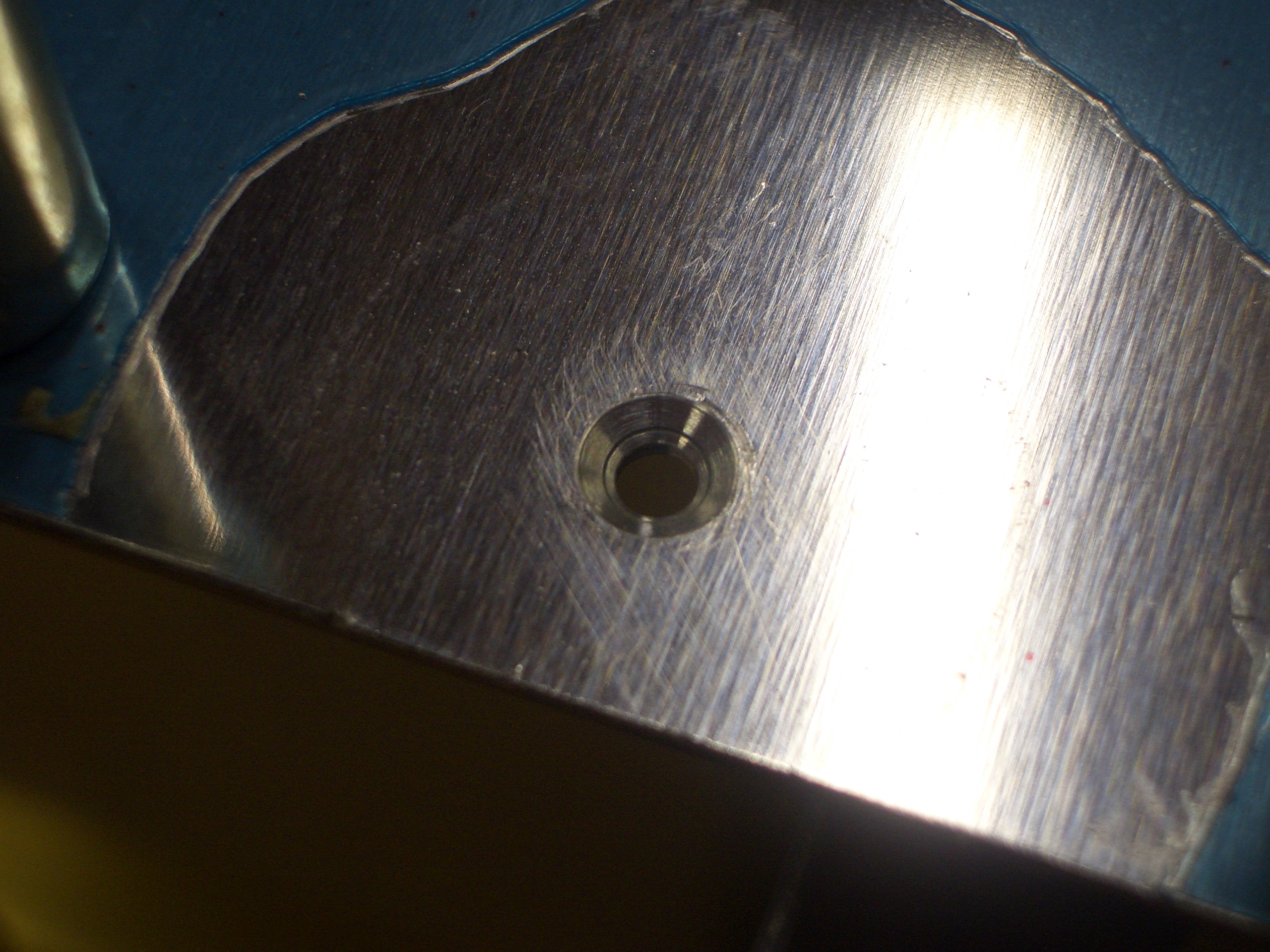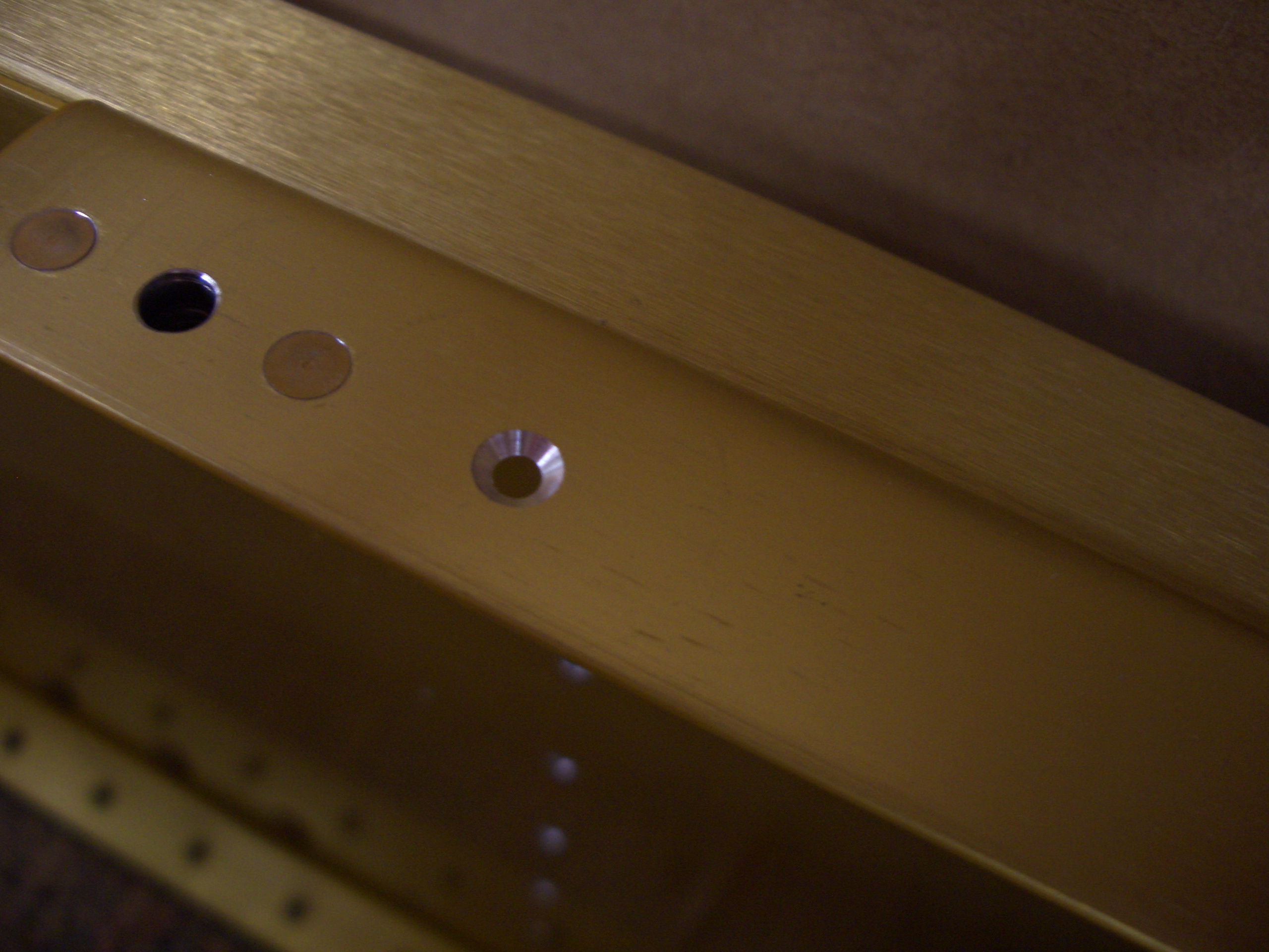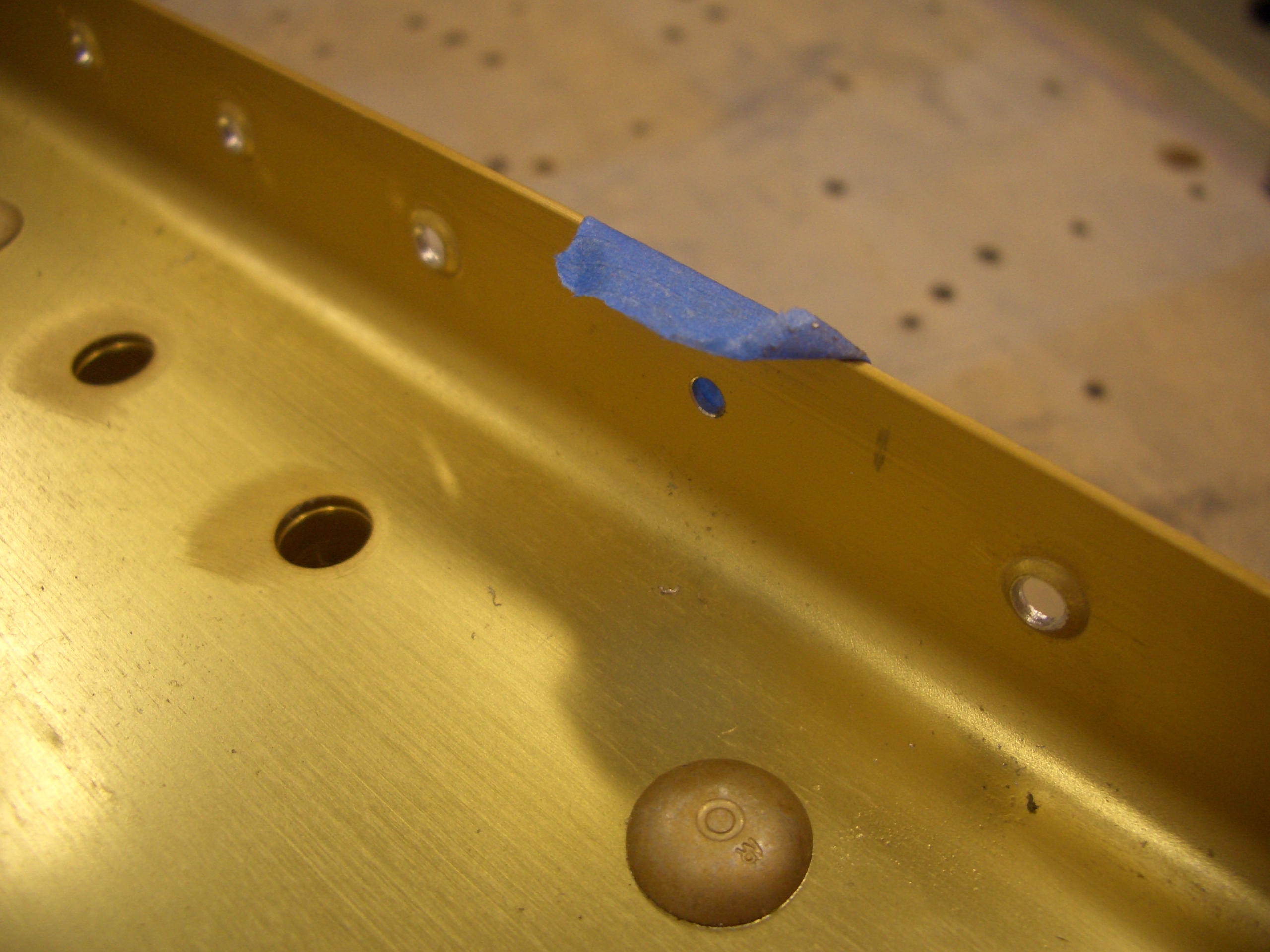 The bottom skins is only 0.025″ thick, which is not thick enough to take a countersink for a 3/32″ rivet. This causes the countersink to penetrate slightly into the F-704 flange. This is ok in this particular case.