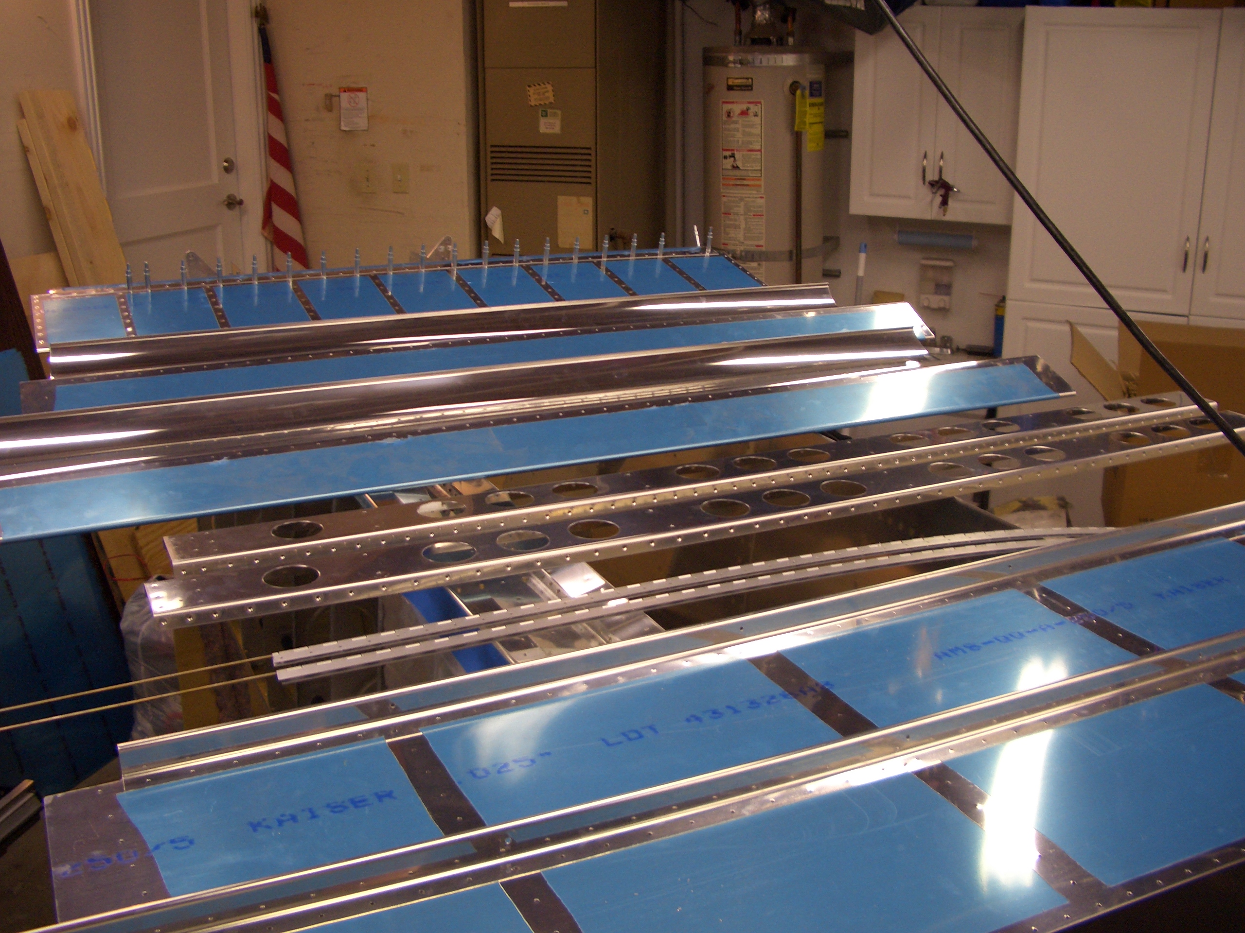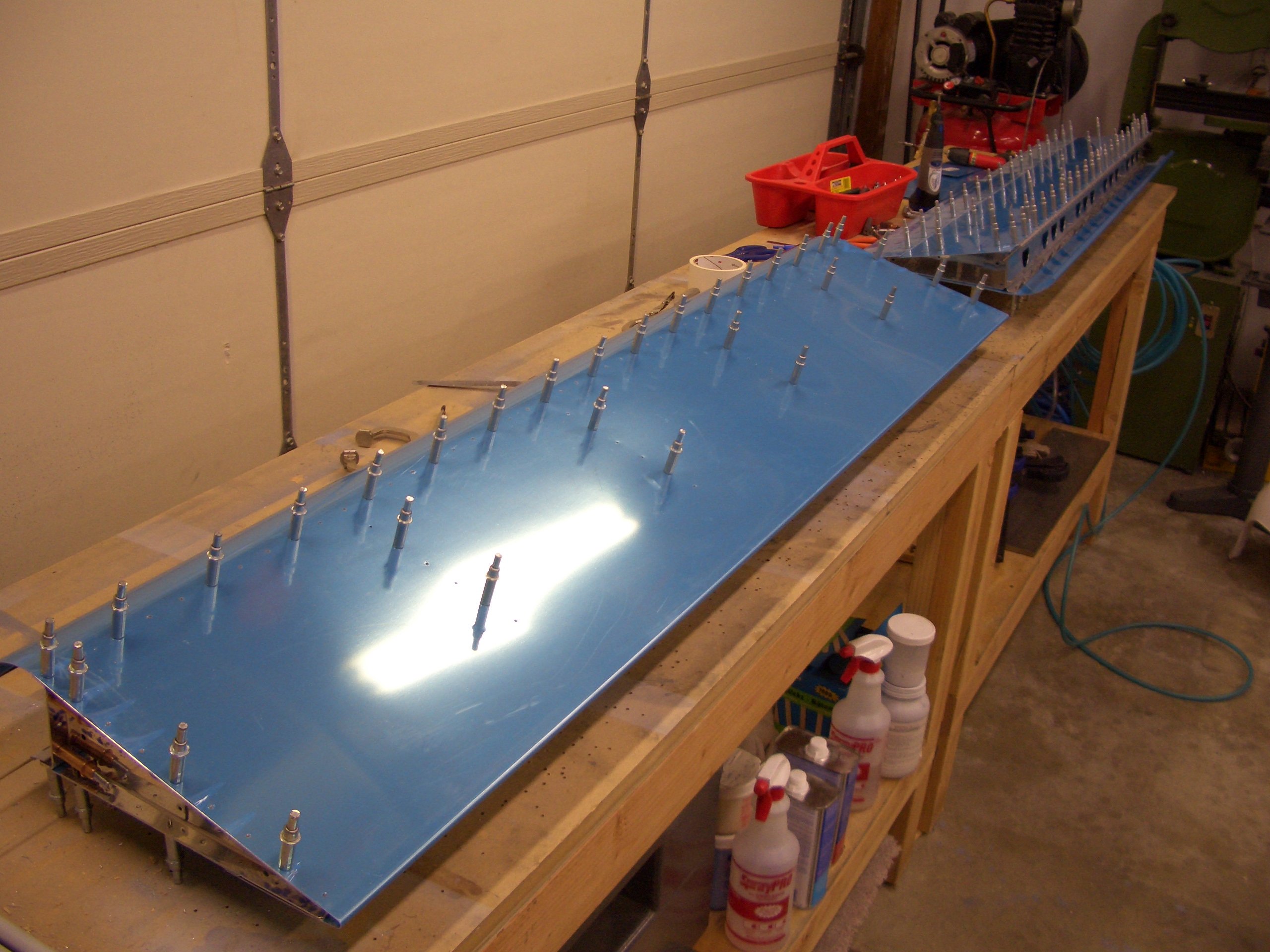 I drilled the ribs to the spars and then clecoed on the bottom skins.