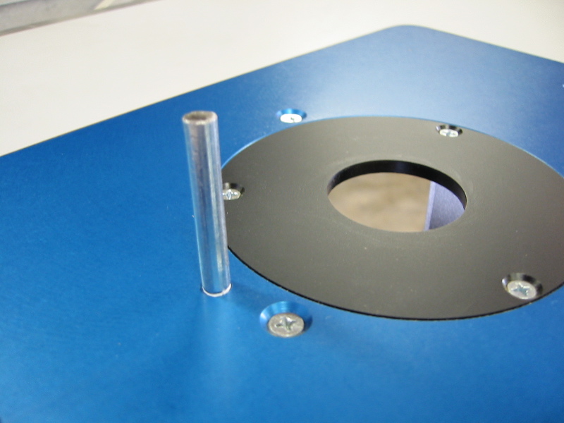 This guide pin allows freehand routing without the fence. This part is $10 from Rockler, or 10¢ if you buy a 1/4-20 bolt and chop off the head and part of the threads as I did...:-). |
